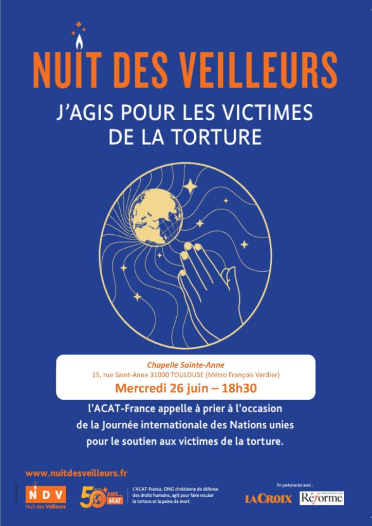 L’association ACAT : Action Des Chrétiens pour l’Abolition de la Torture organise comme chaque année un temps de prière à l’occasion de la journée internationale pour le soutien aux victimes de torture.