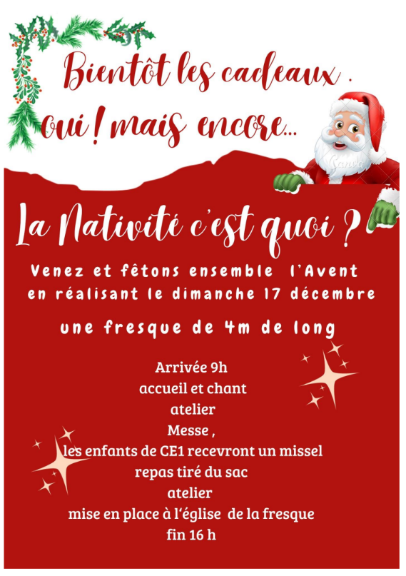 Une journée, en paroisse, pour entrer dans les préparatifs de Noël et se rappeler le sens que nous donnons à cet événement. – Prévoir son pique-nique !